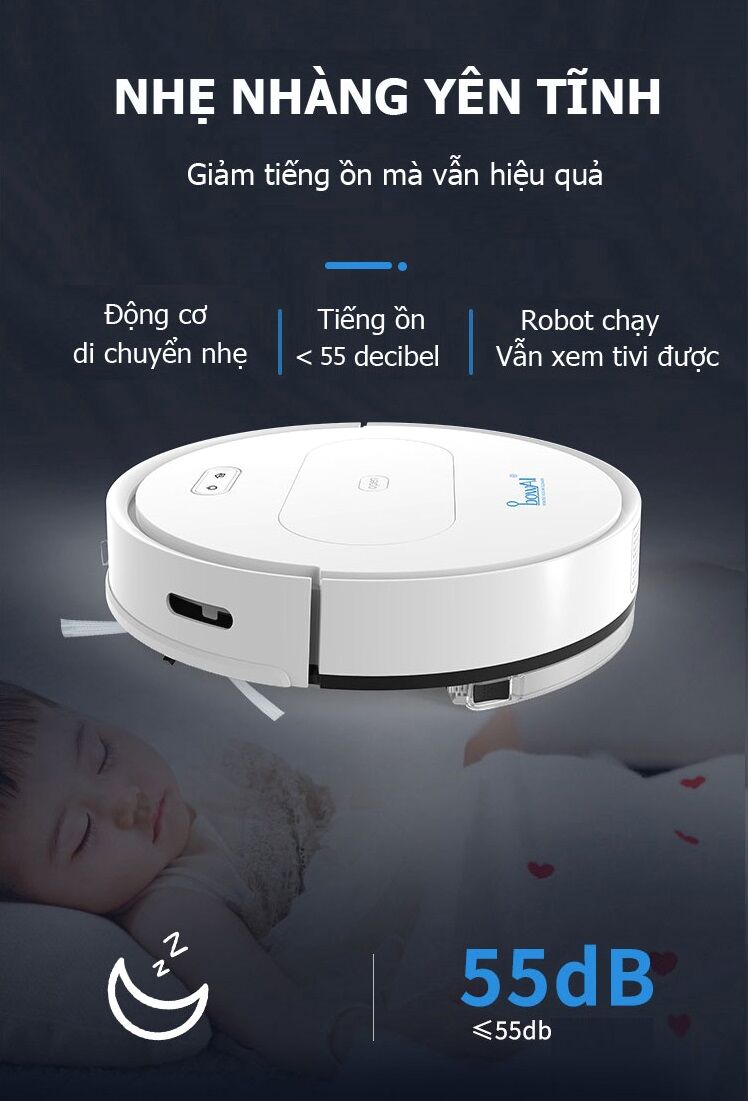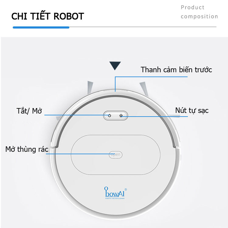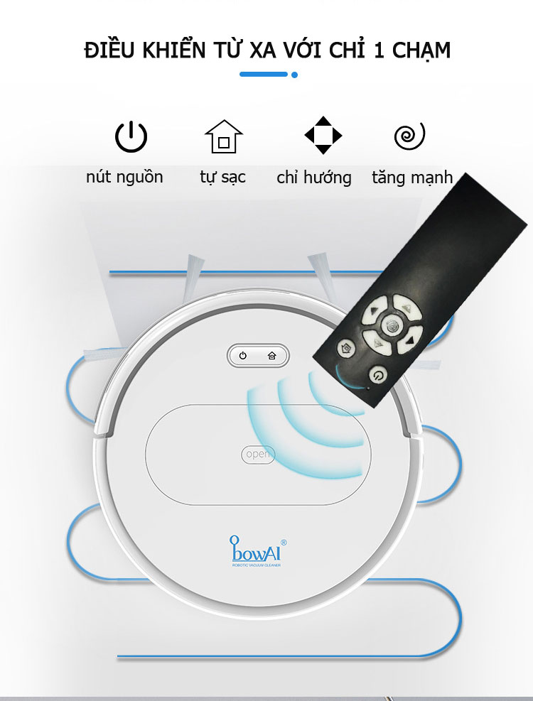 Robot hút bụi lau nhà bowAI OB11 cao cấp tự động sạc trang bị bộ xử lý định hướng đường đi thông minh kết hợp cảm biến di chuyển hiện đại giúp robot có khả năng, định hướng đường đi chính xác và hút sạch bụi bẩn ở mọi ngóc ngách. giúp bạn giải quyết công việc dọn dẹp hiệu quả chỉ bằng 1 nút bấm.